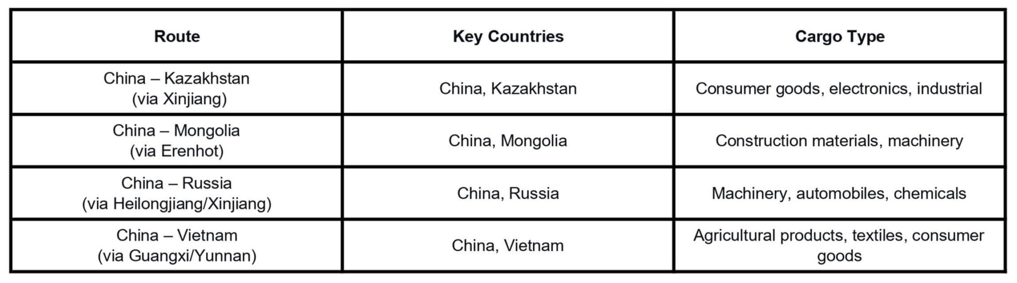 The origin country is typically connected to the destination country through road systems, allowing for seamless, direct shipments.