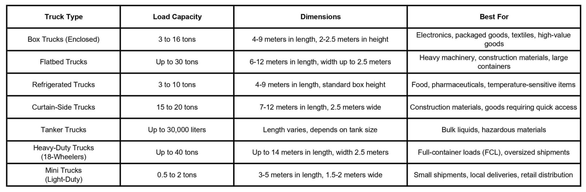 Similar to Less Than Container Load (LCL) in sea freight, LTL refers to shipments that don’t require a full truck. This option is suitable for smaller shipments that don’t fill an entire truck. -